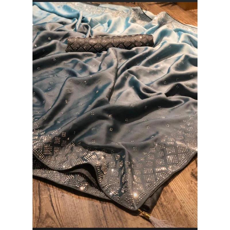 Bollywood designer saree . work rangoli peding half and half saree with diamond. Short sleeve blouse.