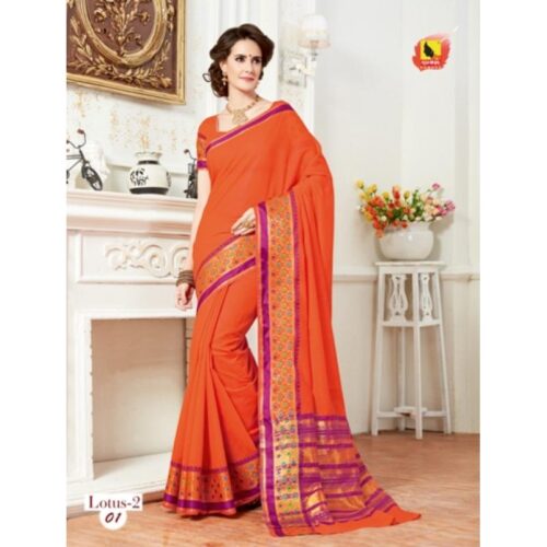 Orange Chunderi Cotton Long Sleeve Blouse Saree